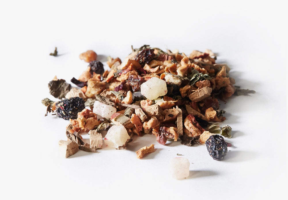 Several adaptogens can be found in our teas. Some of the most common ingredients include reishi, chaga, schizandra, ashwagandha, ginseng and tulsi (aka Holy Basil).